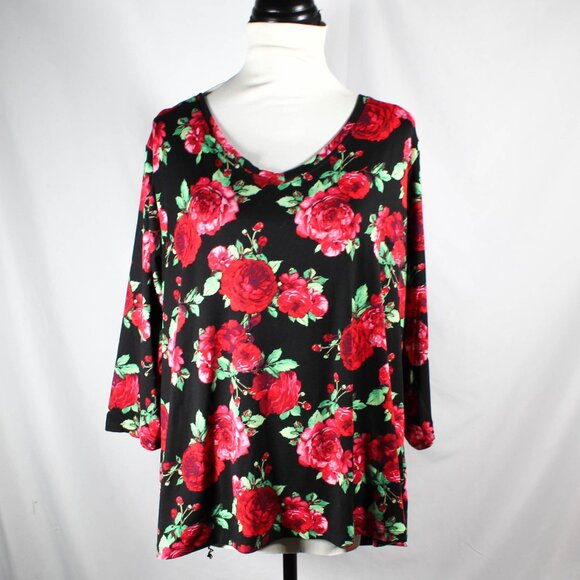Womens Rose Floral Romantic Casual Bold Blouse Top Size XXL Pioneer Woman