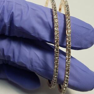 Add a touch of luxury to your jewelry collection with our stunning Rose Gold Overlay Outside Hoop Earrings made with Swarovski Elements. These earrings are the perfect blend of elegance and sophistication, featuring sparkling Swarovski crystals that catch the light beautifully. The rose gold overlay adds a modern twist to the classic hoop design, making these earrings a perfect accessory for any occasion. Made with high-quality materials, these earrings are designed to last and will become a cherished addition to your jewelry collection.