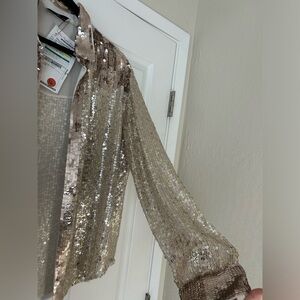 Women’s Rose Gold Sequin Western Shirt, Size Small