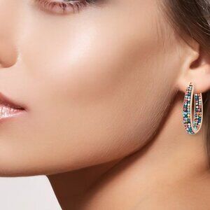 Women's Rose Gold Tone Plated Earring Multi Color with Swarovski Crystal Loops