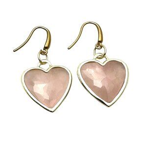Womens Rose Quartz Gemstone Pink Heart Gold Plated Earrings Pierced Chandelier