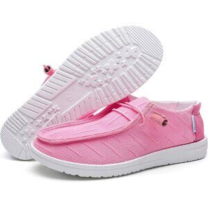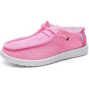 Women's Rose Red Casual Slip On Deck Canvas Loafers Sneakers Boot Shoes