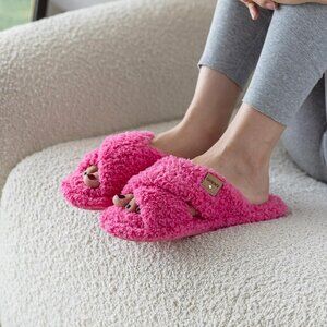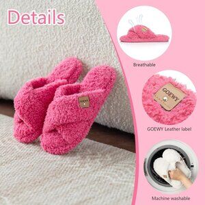 ⚡Women’s Rose Red Faux Fur Cozy Fuzzy Cross Band Slippers Indoor House Shoes