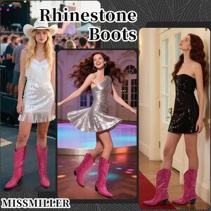 Occasion:The mid calf rhinestone Cowgirl boots are perfect for various occasions,such as party,dating,club nights,vacation,halloween,christmas,etc.They can match any outfit,such as dresses or pants,to show your unique style.
