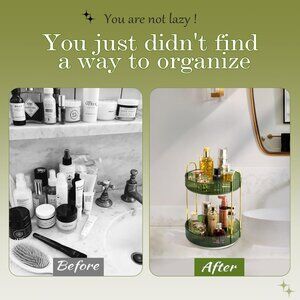 makeup organizer rotation without noisy, it has a stable base that rotates smoothly and makes it easy to access the cosmetics you need in seconds.