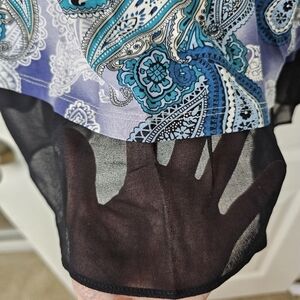 Women's Round Neck Short Sleeve Flowy Chiffon Trim Loose Fit Tunic Top, Teal Paisley,