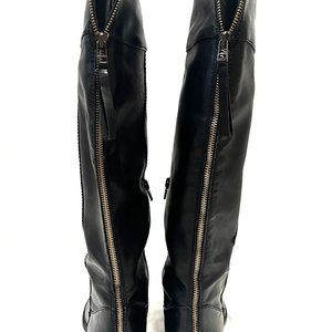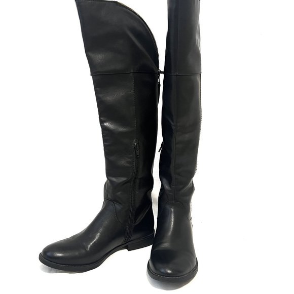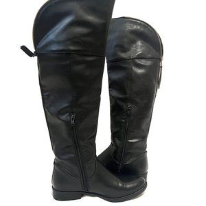 Women's Round Toe Tall Black Boots with Faux leather finish size 8