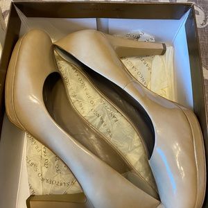 Size 10 nude gently used rounded toe heel. Comes in original box.