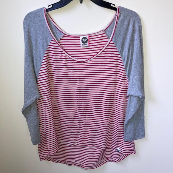 Roxy Color Block Striped Top Women’s Size Large Shirt 3/4 Sleeve Some mild fading Soft and comfortable