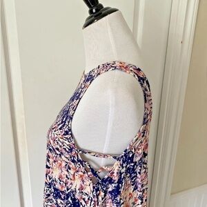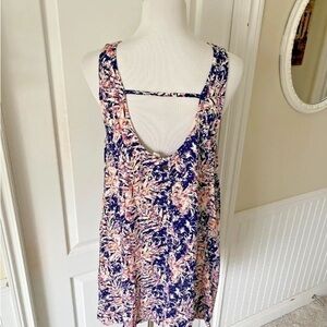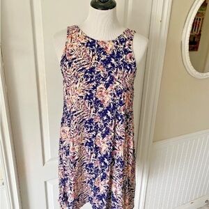 Womens Roxy Size Small Dress Mini Beach Cover Up Navy Blue Floral Criss Cross