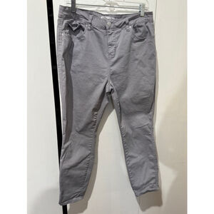 These are pre-owned Royalty For Me ankle high-rise pants, size 16. They are made of 97% cotton and 3% spandex. The pants are gray and feature a standard five-pocket design with a button and zipper closure. See pictures for measurements. The style number is WP933530. The jeans are in good preowned condition.