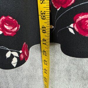 Womens Roz & Ali Black & Red Floral Sleeveless Dress Scallop Hem Polyester 14