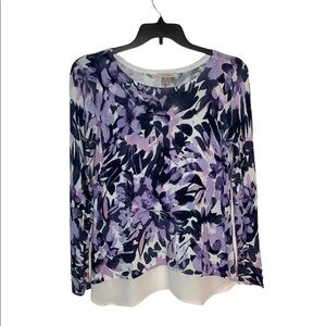 Women's Roz & Ali M Medium 8 - 10 Sweater Crew Floral Flowers Purple Colorful