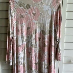 Lovely Rayon/Spandex Ruby Rd. Top With Pink, Beige, and White Floral Design. Size XL.