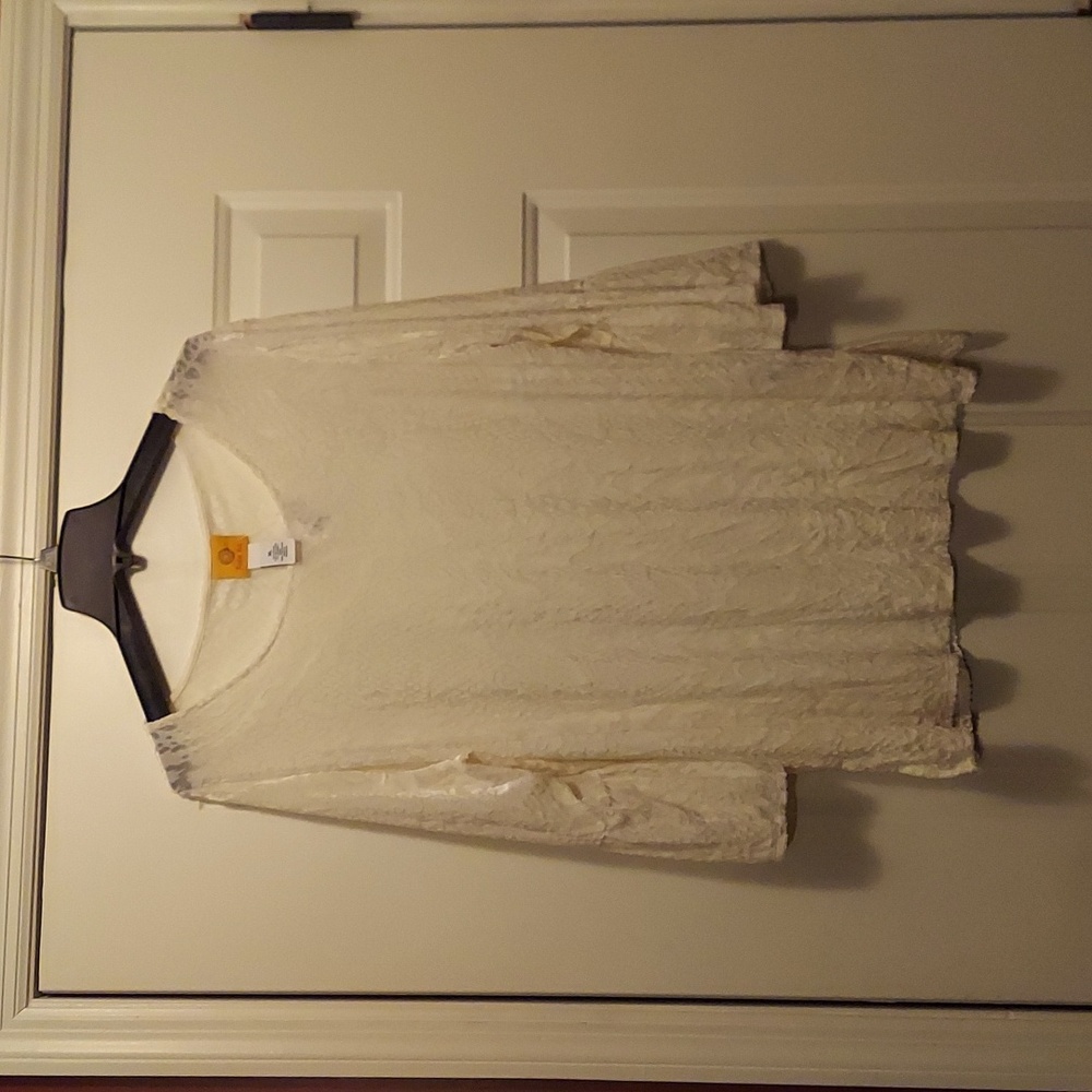 Pretty cream colored Ruby Rd. top. 3/4 sleeves. Spandex for a nice stretch. Velvet fabric.