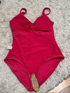 Stylish raspberry one-piece swimsuit with flattering ruched front and supportive cups. Designed for comfortable all-day wear with adjustable straps and full coverage. A versatile swim piece that enhances shape and confidence.