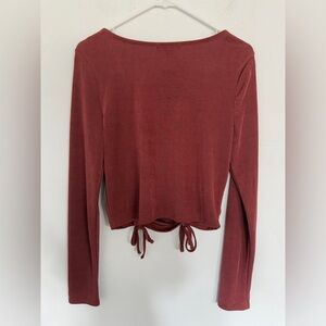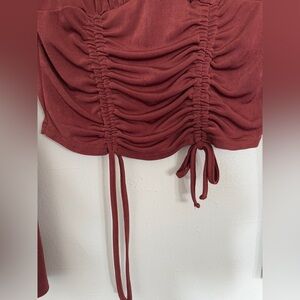 Elevate your style with this chic rust top. Featuring a flattering ruched design, it's perfect for any occasion.