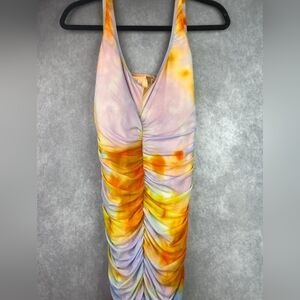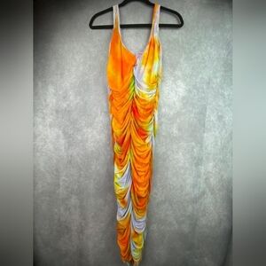 Women's Ruched Sleeveless sheer lined Dress Size XXL Color Orange
