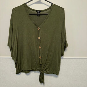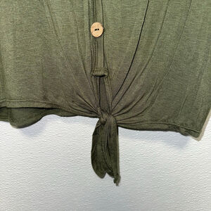 Women's Rue21 Green Button Front Tie Hem Short Sleeve Tee Medium Cozy