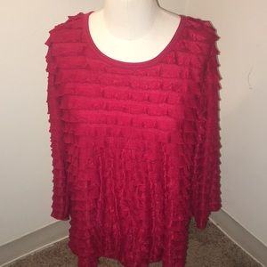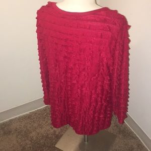 In great condition. Red in color. Designed by Travel Elements. Women’s size large. 3/4 sleeves.