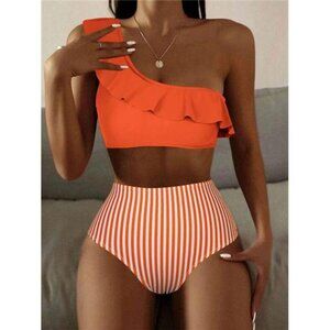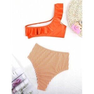 Women's Ruffle One Shoulder Sleeveless Bikini Set
