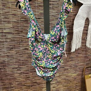 Women's Ruffle Shoulder Ruched Full Coverage One Piece Swimsuit - Kona Sol™ Multi L
