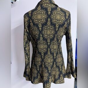 Women’s Ruffled Blouse w Accordian Pleats,Large, Black/Goldish, Laura Scott