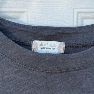 Stylish, size medium, charcoal crop top from Altar’d State.🪩💞Not super cropped, it did cover my stomach in high waist jeans. Very cute with playful ruffles. Super ideal for casual outings! 🫶🏼