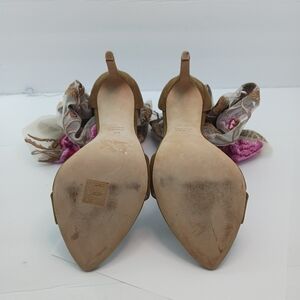 Womens Ruffled High Heels Floral Sheer Suede Made in Italy Stiletto Brown