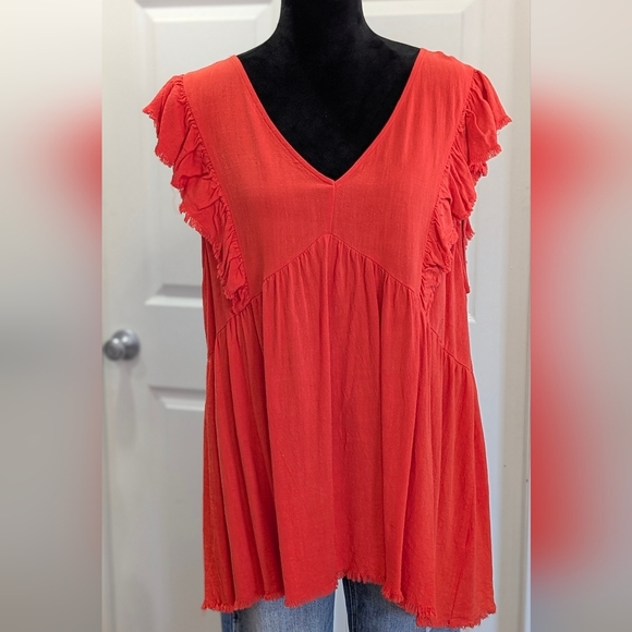 Women's Ruffled Red Top