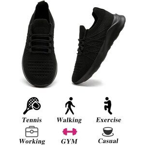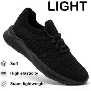 Womens Running Shoes Walking Tennis Sneakers Slip on Gym Workout Black Mesh