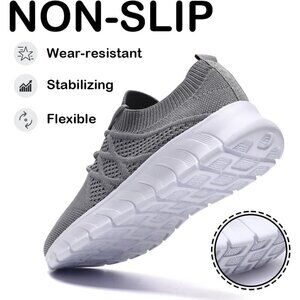 Womens Running Shoes Walking Tennis Sneakers Slip on Gym Workout Gray Mesh