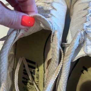 Used one season. Extra spikes and tool included. I left original spikes in shoes as I had a difficult time removing them myself.
