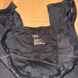 Elevate your workout wardrobe with these sleek and versatile athletic leggings. Featuring a cropped length, these leggings are designed for optimal performance and comfort during any activity. The streamlined silhouette offers a flattering fit, while unique detailing at the calves provide a touch of visual interest and enhanced breathability. Crafted for the active woman, these leggings seamlessly blend fashion and function, ensuring you look and feel your best as you push your limits. These pants feature a wide elastic waistband and a comfortable design.