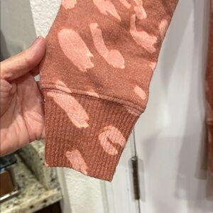 Stay cozy and stylish with this rust leopard print oversized sweater for extra comfort. Super soft and machine washable. Hem is ribbed and has slits on both sides. Can be worn with leggings or jeans. Perfect for any casual outing.