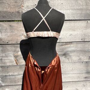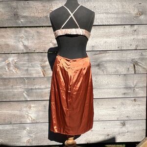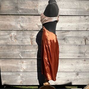 Women's Rust & Pink Color Block Cut Out Satin Slip Dress