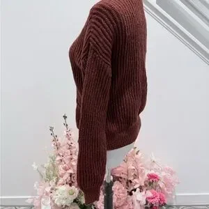 Soft rust ribbed cardigan with a V-neck and front buttons. Features two front pockets for practical style. Lightweight knit ideal for layering and everyday wear. Adds warm rust tone to outfits.