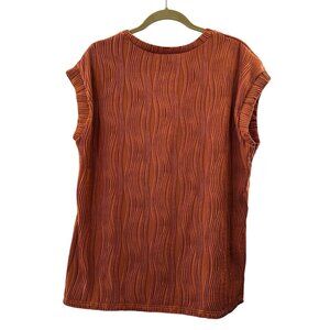 Womens Rust Textured Sleeveless Top XL Orange Ribbed Summer Blouse Relaxed Fit