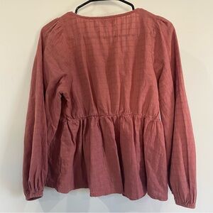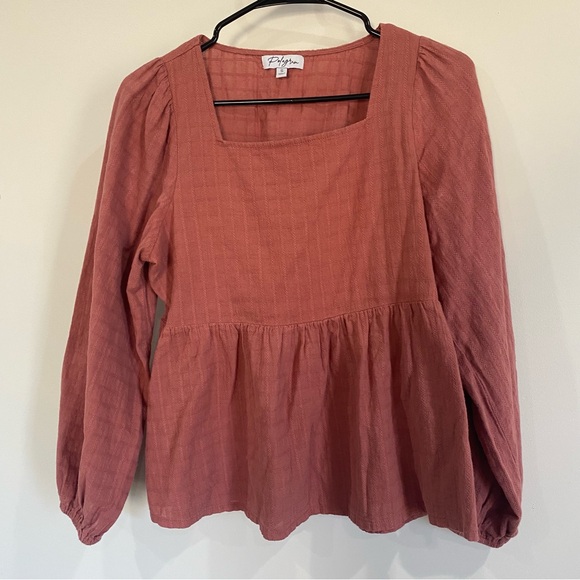 Elevate your wardrobe with this beautiful blouse. This stylish piece features a rich rust pink color, perfect for any occasion.