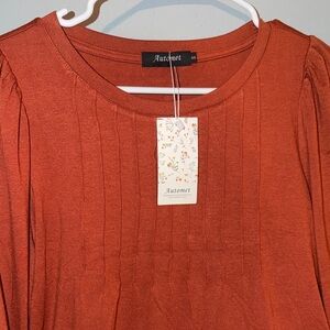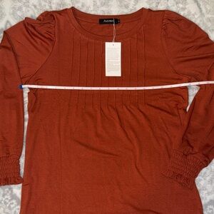 Elevate your wardrobe with the Women's Rust Top. This stylish top features a warm rust color, perfect for any season. Its elegant design and comfortable fit make it a must-have for your collection. New with tags.