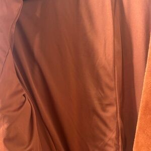 Stay warm and stylish with the Women's Rust/Brown Faux Fur Coat. This elegant coat features a rich rust/brown color, perfect for any occasion.
