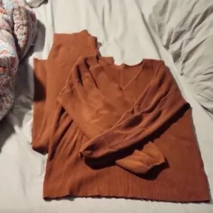 Cozy and stylish rust-brown sweater set perfect for any occasion. Soft fabric ensures comfort and warmth.