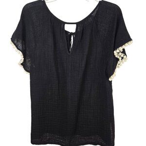 Womens S Black Boho Keyhole Tie Front Top Hippy Cottagecore Whimsigoth Casual