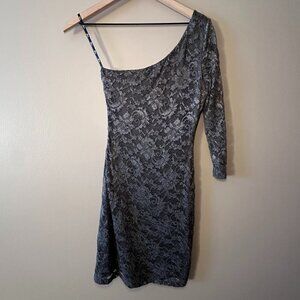 Women's S Guess One Shoulder Gray Lace Mini Stretchy Bodycon