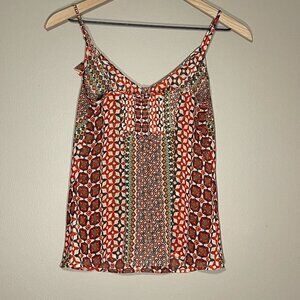Tags: guess, vintage, sheer, ruffle, tank, red, blue, adjustable straps, guess tag, geometric, smocked, spaghetti straps, sleeveless, colorful, lightweight, loose, print, pattern, Festival, streetwear, day date, rooftop, birthday party, beach, summer, winter, spring, fall, casual, day outings, vacation, parties, errands, coffee date, get-togethers, bbq, Coastal Cowgirl, Sungirls, boho, bohemian, cute, girly, trendy