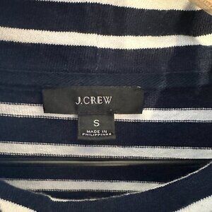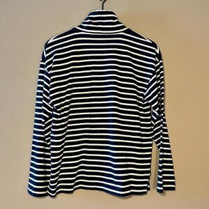 Women's S J Crew Striped Funnel Neck Top Navy Blue White Drawstring