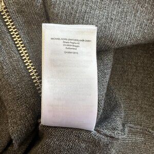Tags: michael kors, zip up cardigan, charcoal gray, chic, trendy, stretchy, ribbed cuff and hem, sliver zipper, logo, MK, long sleeve, sweater, business casual, professional, business attire, interview, successful, powerful, business trips, casual, date night, day outings, vacation, summer, winter, spring, fall, concert wear, Festival, parties, errands, coffee date, get-togethers, bbq, night out, rooftop, Daily wear, rooftop, birthday party, career, open front, elegant, trendy, cool nights, bonfires, tailgating, cool weather, football games, autumn, campfires, snow day, cozy, winter wonderland, winter mood, winter outfit, winter look, winter fashion