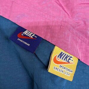 This Nike windbreaker jacket combines modern colorblocking with functional design, featuring lightweight material, a full zip closure, and an adjustable drawstring waist.