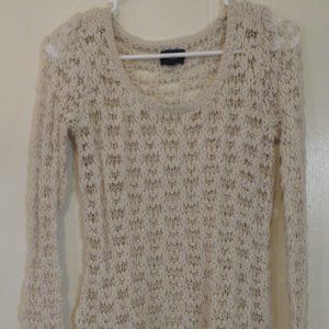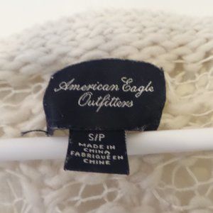 American Eagle Women’s S Open Knit Sweater White Pullover Crochet