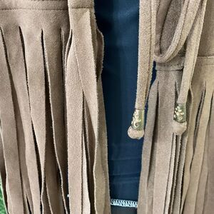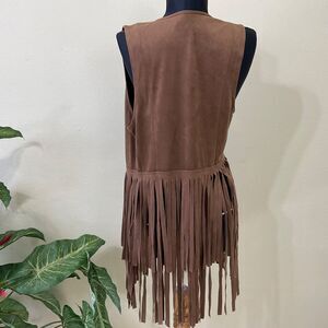 Womens Vest tie front Brown Faux Suede Fringe Rodeo Western Boho Yellowstone